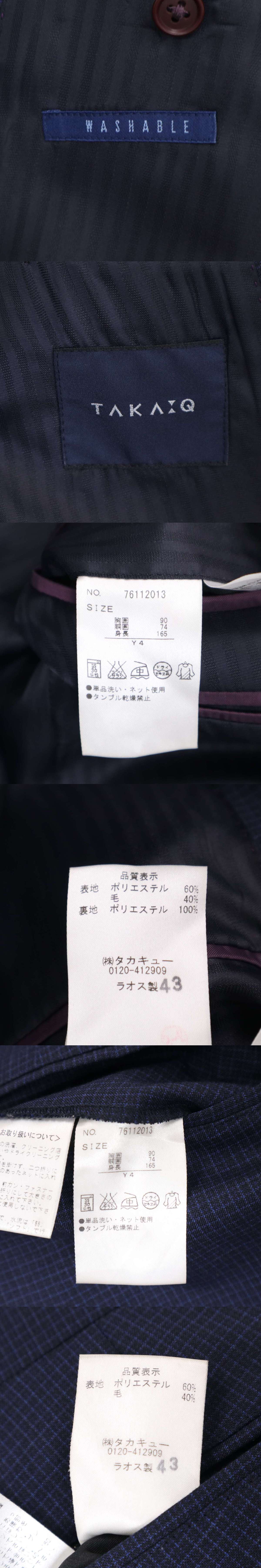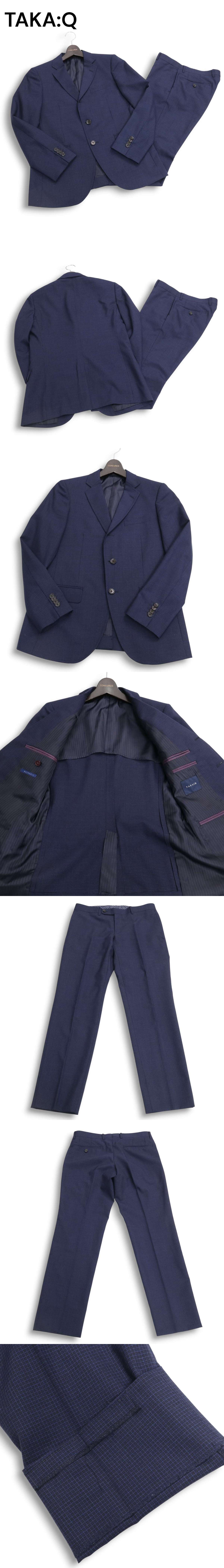TAKA:Q タカキュー 春夏 背抜き★ チェック柄 ウォッシャブル セットアップ スーツ Sz.Y4 メンズ ネイビー ビジネス 收藏