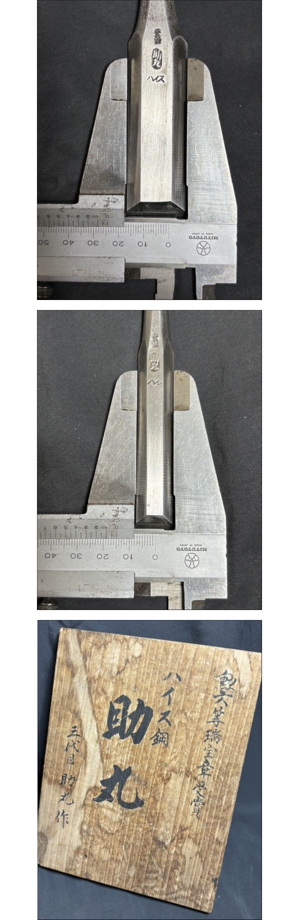 静) 5本セット★三ツ裏 鑿 在銘【三代目 助丸作 ハイス鋼 助丸】 勲六等瑞宝章受章 刃幅 【48/36/30/24/15mm】 領収可 h1113-4-7b 收藏