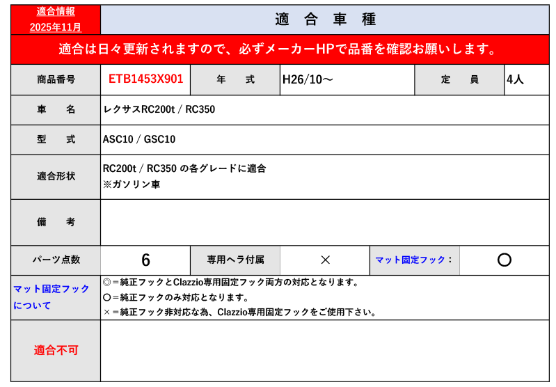 [クラッツィオ]ASC10,GSC10 レクサスRC200t / RC350_ガソリン車(H26/10~)用カスタムフロアマット(ラゲッジ無)[ETB1453X901] 收藏