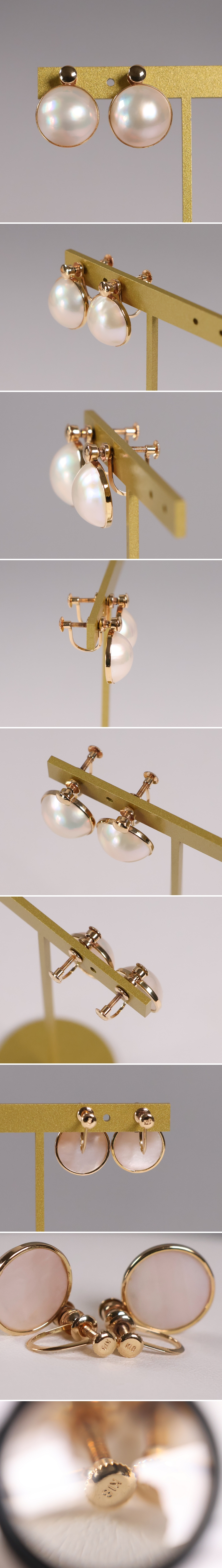K18 マベパール イヤリング 真珠 半月パール ネジ式 18金 回転式 両耳 天然【K87】 收藏