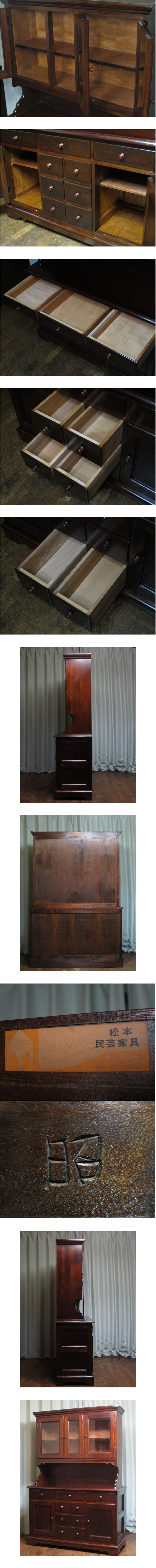 美品 松本民芸家具 ミズメザクラ 無垢材 C型 食器棚 定価935,000円/リビングボード/キャビネット/飾り棚/伝統工芸/和モダン/柳宗悦 收藏