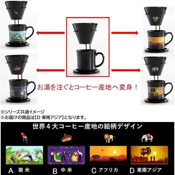 | お湯を注ぐとコーヒー産地へ変身!ギフトにもおすすめのおしゃれなコーヒーブリューワーセットです。 |