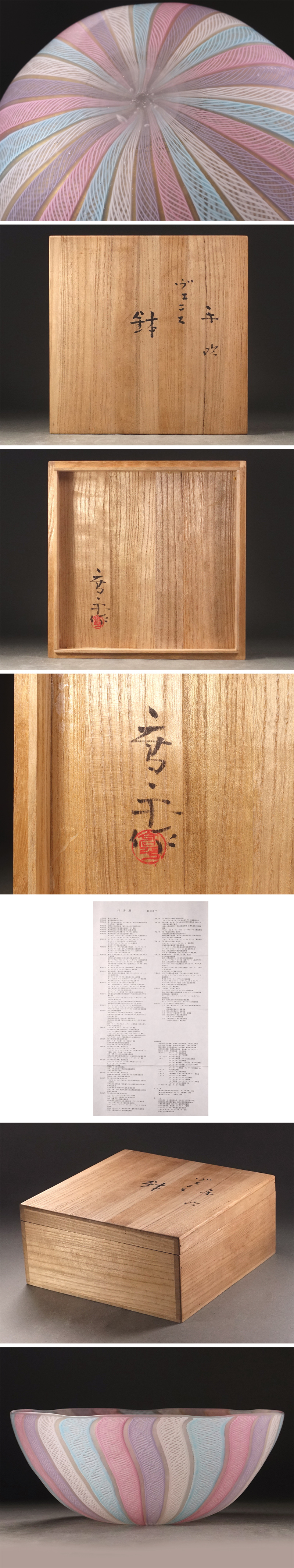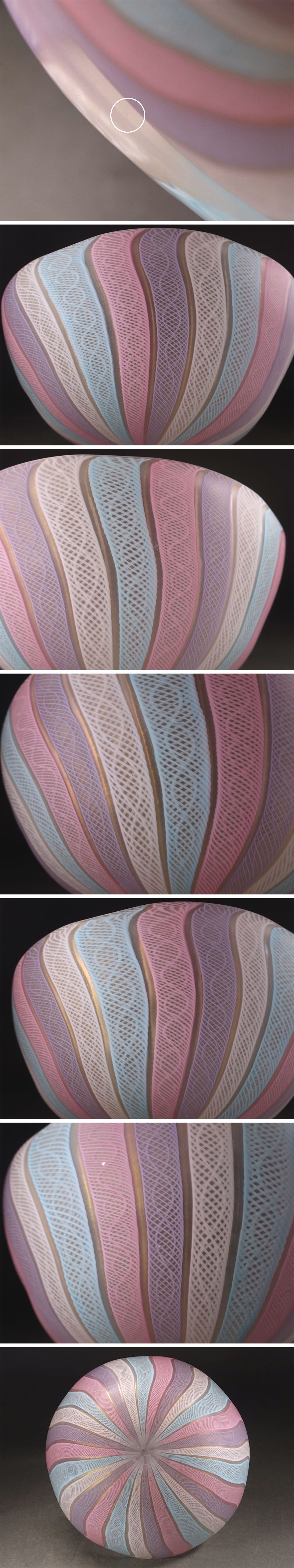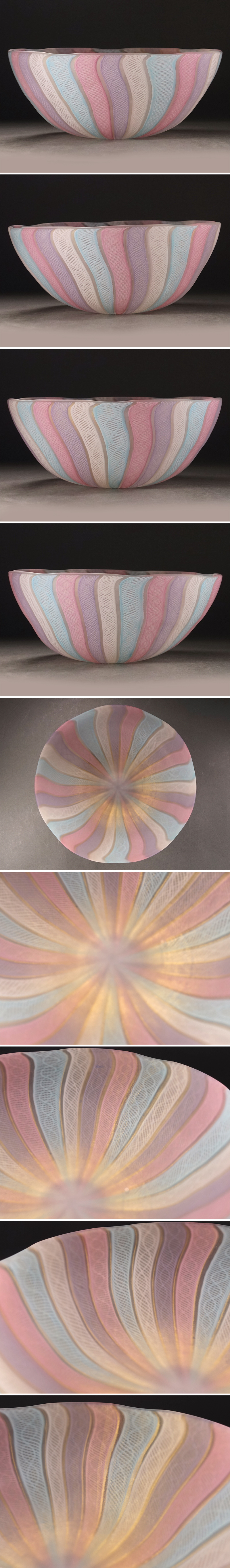 ∇花∇文化勲章受賞作家【藤田喬平】秀逸作 手吹ヴェニス鉢 直径23cm 共箱付 パステルカラーのレース文様 喬平のモダンなガラス芸術 收藏