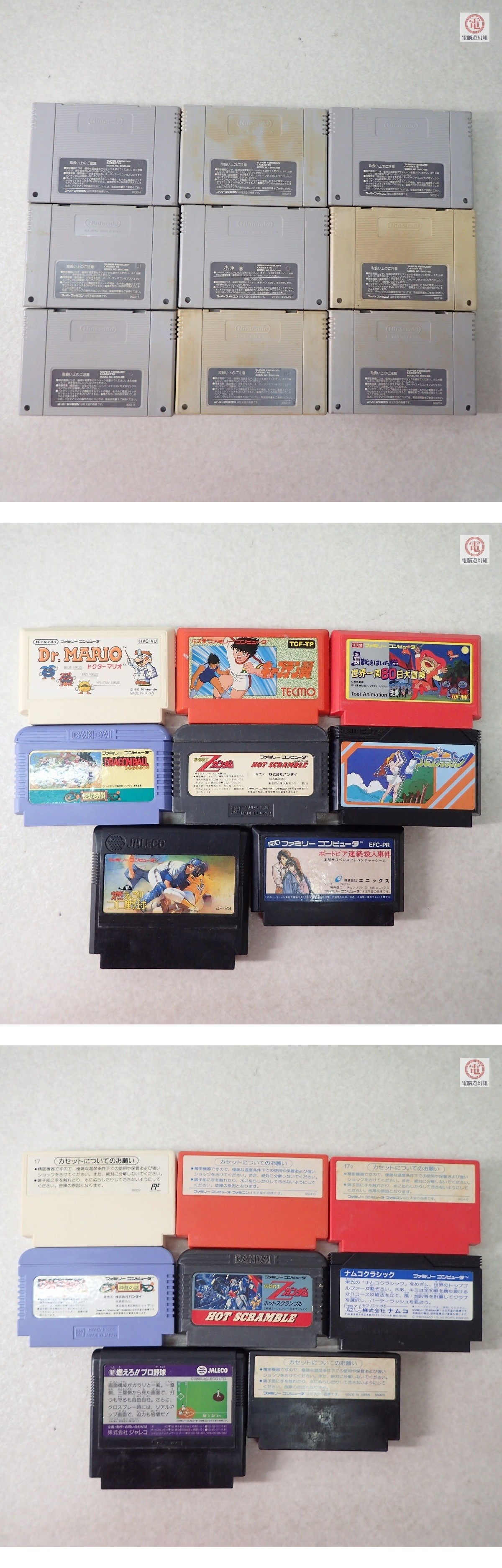 | ○FC/SFC/N64 ポケモンスタジアム/ロックマンX2/ドラゴンクエストV/スーパーマリオ/幽遊白書等 まとめて60本set 動作未確認 | |