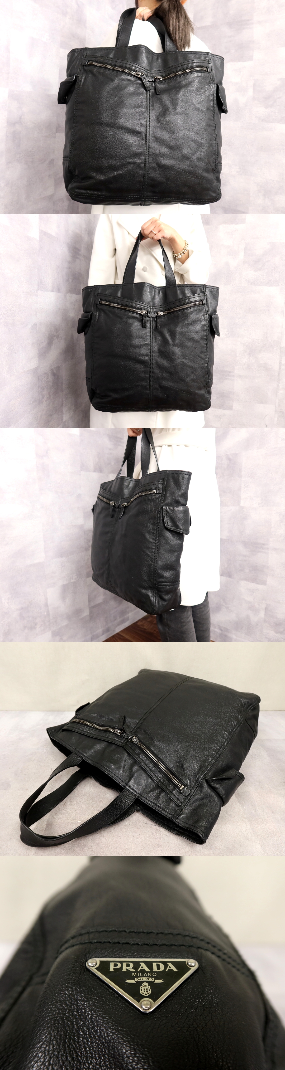 ●超美品●PRADA プラダ●メンズ●三角ロゴプレート●カーフ レザー 本革●トート バッグ●黒●イタリア製●A4 収納 書類 かばん●Js63800 收藏