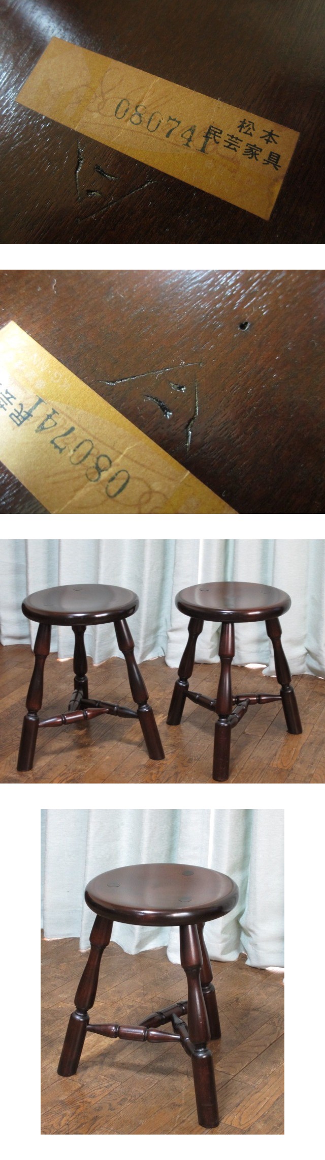 松本民芸家具 ミズメザクラ 無垢材 三脚スツール b/丸椅子/丸イス/チェア/飾り台/伝統工芸/和モダン/柳宗悦/河井寛次郎/バーナードリーチ 收藏