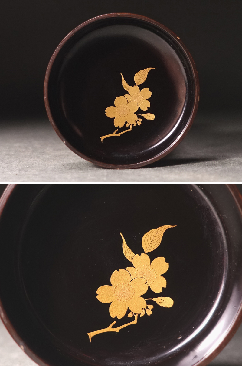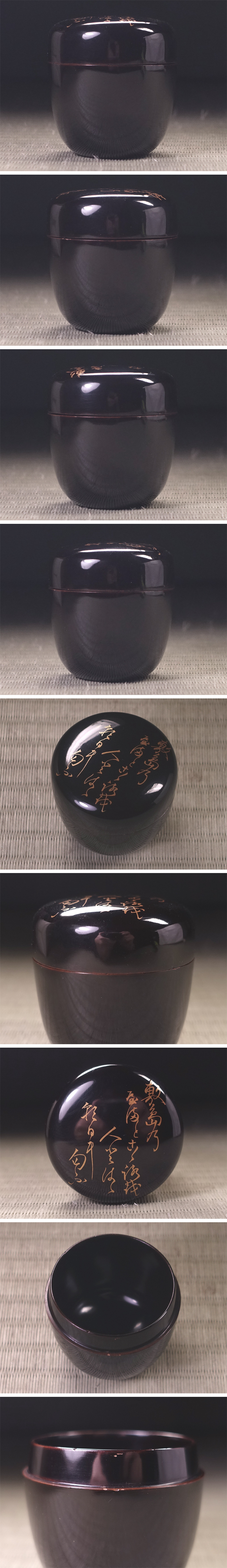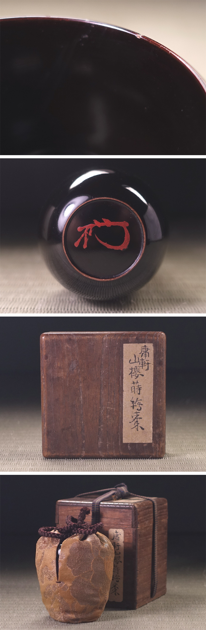 ∇花∇庸軒流茶道開祖・藤村庸軒所縁か 敷島の和歌詠(本居宣長) 山桜蒔絵棗 朱漆花押 仕立箱・仕覆入 收藏