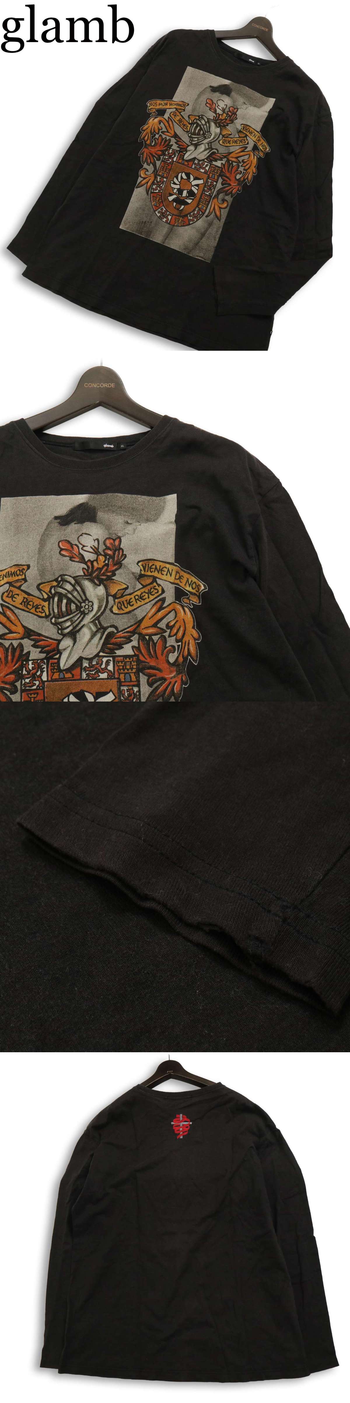 glamb グラム 通年★ グラフィック プリント 紋章 騎士の兜 長袖 カットソー ロンTシャツ Sz.XL メンズ 黒 大きいサイズ 收藏