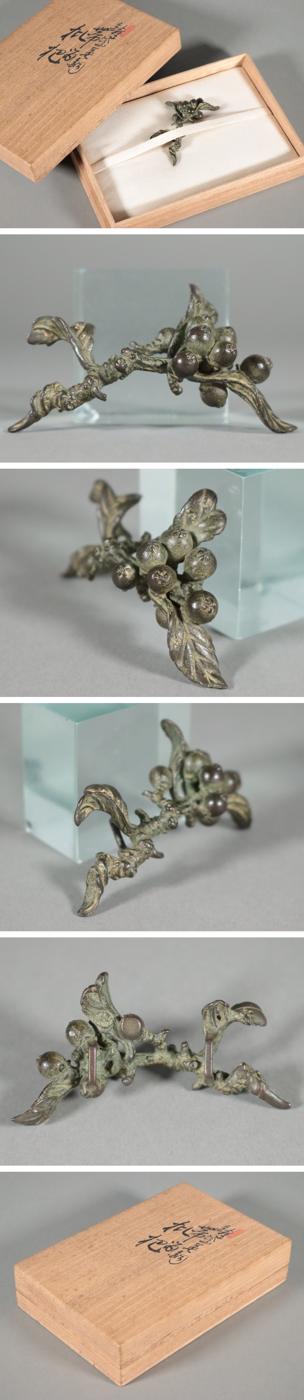 水石添景の巨匠 添配作家 素芳庵 平安英正 若原英正 / 蝋型鋳銅 青銅 銅製 帯留 枇杷 共箱 / 添景 盆景 盆栽 時代物 骨董品 古美術品 收藏
