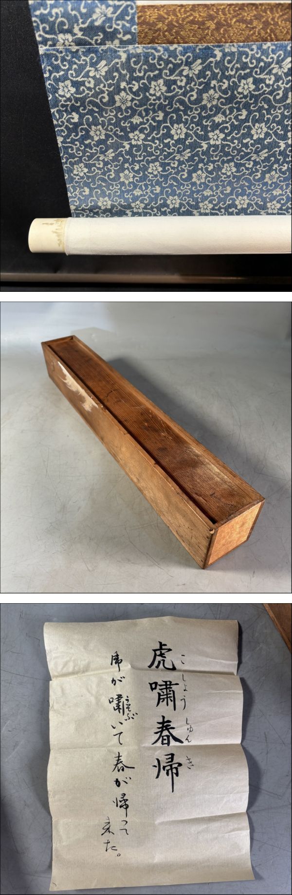 M2-632 書 虎嘯春帰/こしょうしゅんき 掛軸 在銘/落款あり 約W45H195㎝ 合箱 スライド木箱入り |