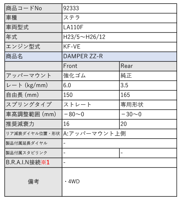 [BLITZ_ZZ-R]LA110F ステラ_4WD(H23/5~H26/12)用ブリッツ車高調[No:92333] 收藏