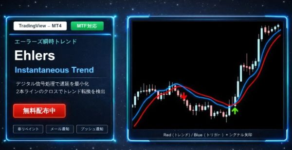 TradingViewで数万人を超えるトレーダーに愛用されている「Ehlers Instantaneous Trend 」をMT4に完全変換しました。