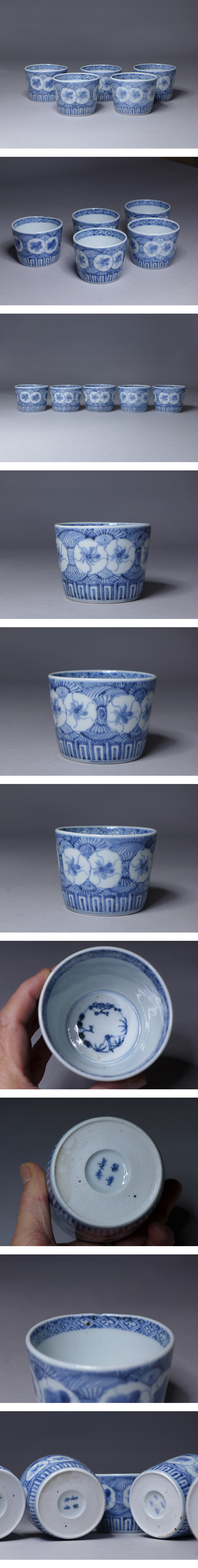 江戸時代 富貴長春銘 古伊万里染付蕎麦猪口 5客です。無疵状態良好。高:約7cm程度。口径:約9cm程度です。状態など画像参照でお願いします。★★★★★★★★★★★★★★★★★★★★★★★★★最近、悪質な入札者が多く非常に迷惑をしております。新規IDや「非常に悪い・悪い」の評価の多い方の入札はお断りさせて頂きます。 仮に入札があった場合でも、発見次第入札を削除させて頂く場合がございます。