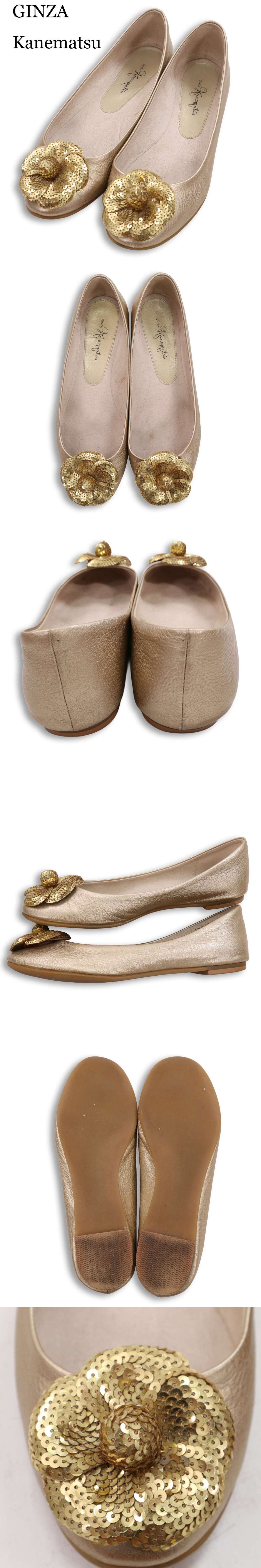 GINZA Kanematsu 銀座かねまつ 通年 スパンコールフラワーモチーフ付き★ フラット シューズ パンプス Sz.24 レディース 收藏