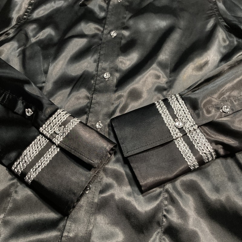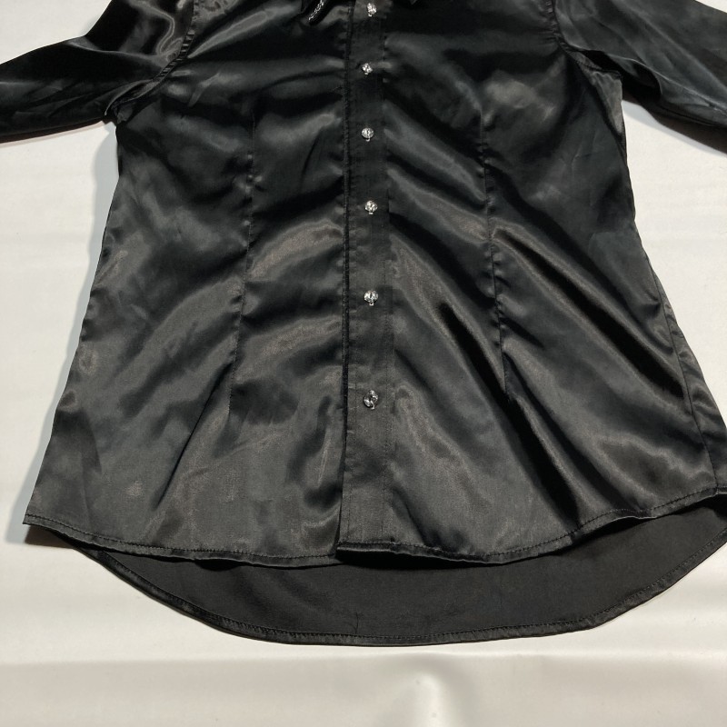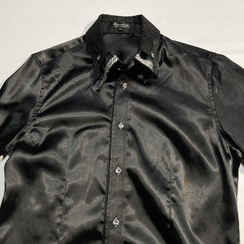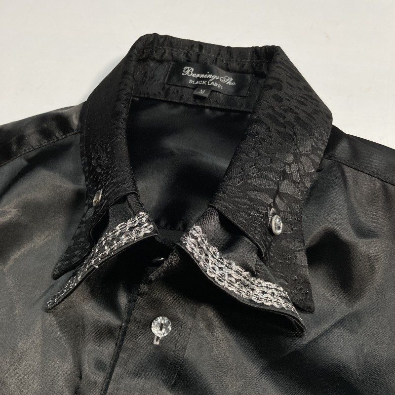 BERNINGS SHO★激レア★美ライン&艶MAX★光沢ブラック 襟切替 長袖シャツ 黒 M バーニングショー ゴシック パンク ロック ホスト V系 Y2K 收藏