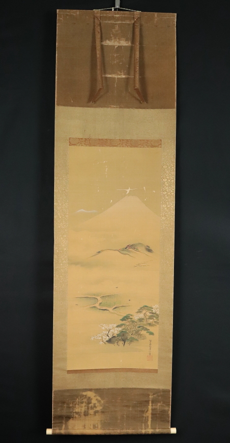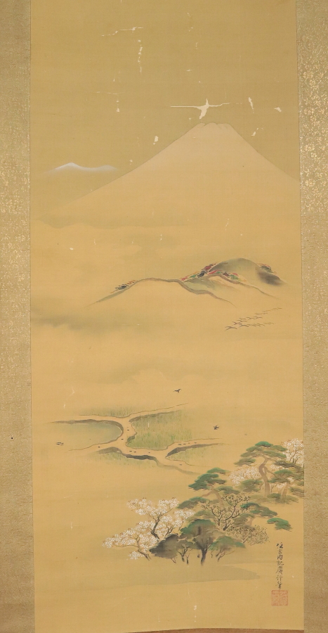 12834◆【真作】住吉広行 四季之富士図 絹本 肉筆 土佐派 板谷桂舟の子 住吉広守に師事 幕府御用絵師 江戸後期 掛軸 收藏