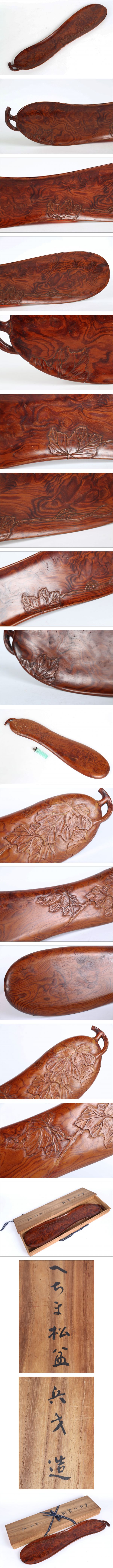 煎茶道具 時代 名工 杉原兵才 木彫 細密彫刻細工 老松 肥松 古材 糸瓜形 へちま 手彫 煎茶盆 共箱 F358 收藏
