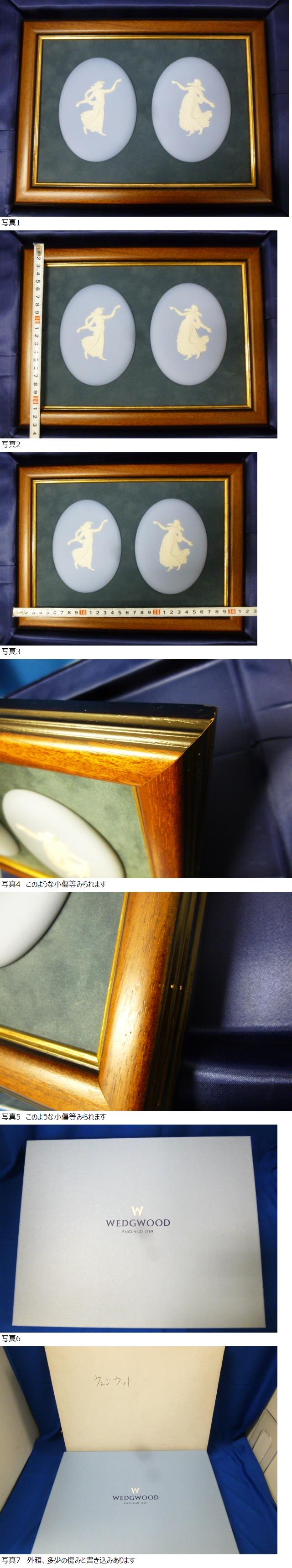 【T22751】WEDGWOOD ウェッジウッド 陶板額 ダンシングアワー ジャスパー ペールブルー 楕円型 額装付き 箱入り 收藏