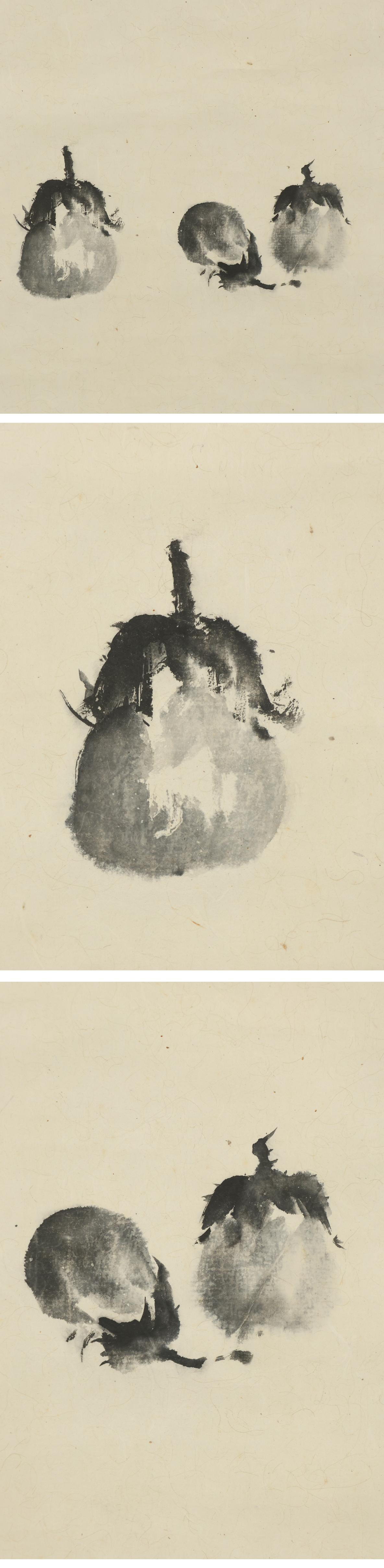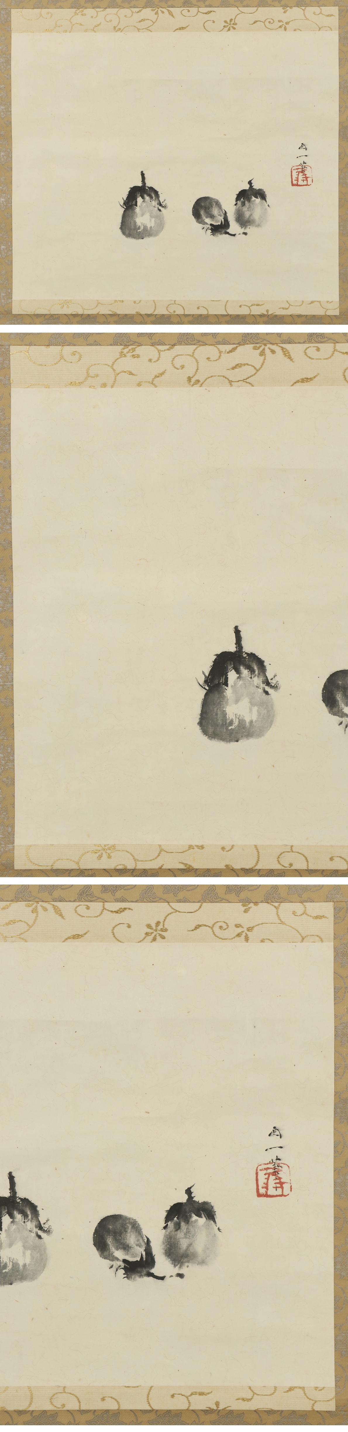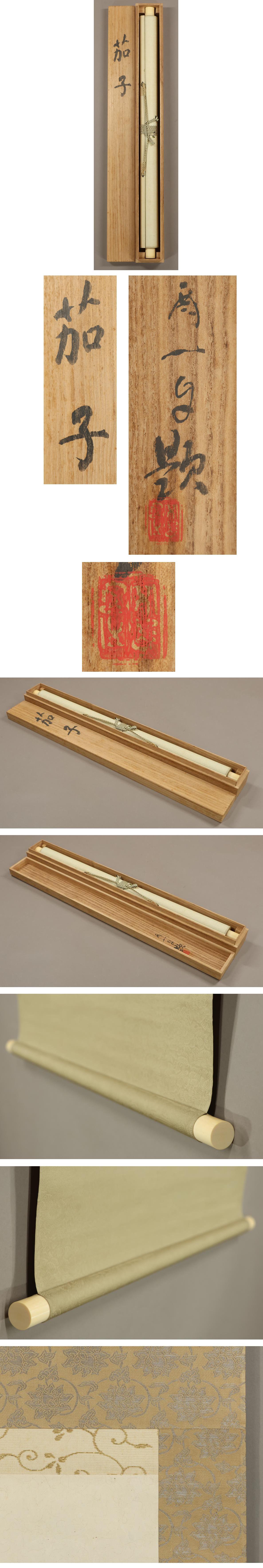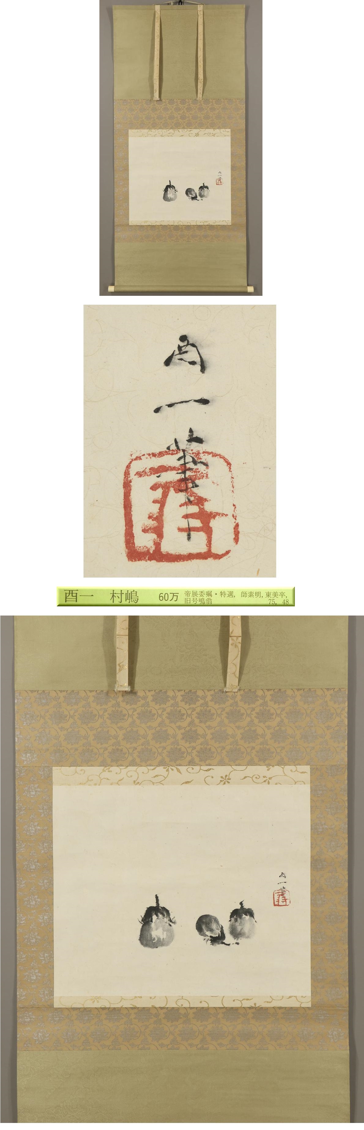 【真作】村島酉一(村嶋酉一)◆茄子◆共箱◆日本画◆富山県◆肉筆◆紙本◆掛軸◆x575 收藏