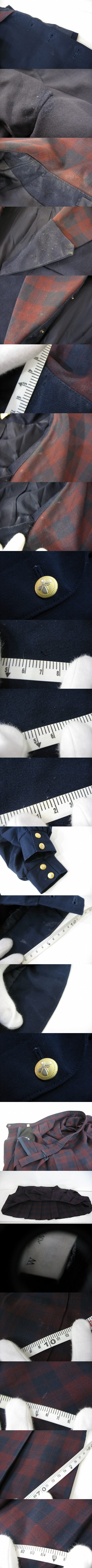私立就実中学校 冬服 上下セット 長袖セーラー スカート HANAE MORI ハナエモリ 臙脂 チェック 肩幅42cm ウエスト幅44cm /中古品 SG P22.0 收藏