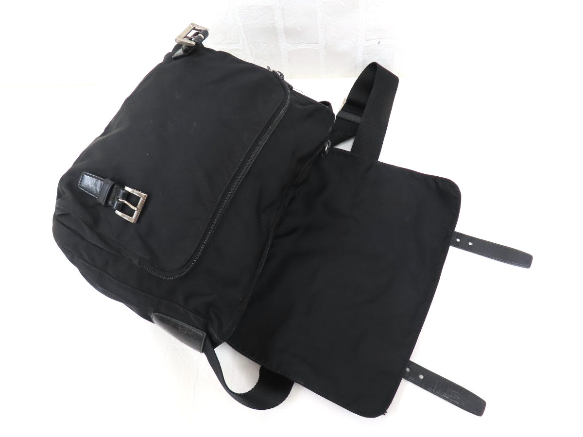 ◆PRADA プラダ◆ナイロン カーフ レザー 本革◆ショルダー バッグ◆ブラック シルバー金具◆イタリア製◆フラップ◆斜め掛け◆A16593 收藏