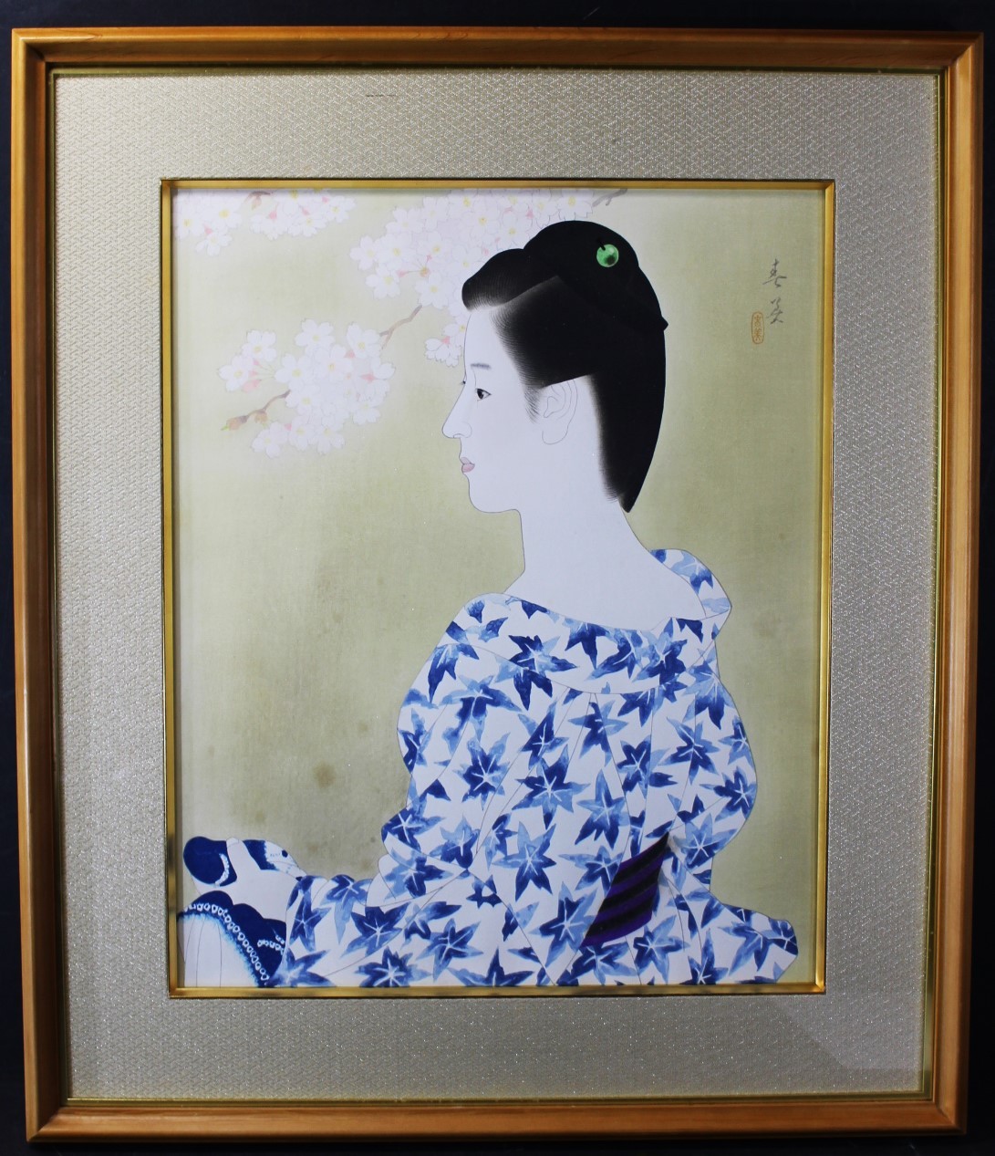 《真作》★立石 春美【湯の香】 木版画.額装* 師 伊東深水*日展特選.評議員.参与*新日展審査員*帝展.文展*桜に美人*佐賀.物故*[桃] 收藏
