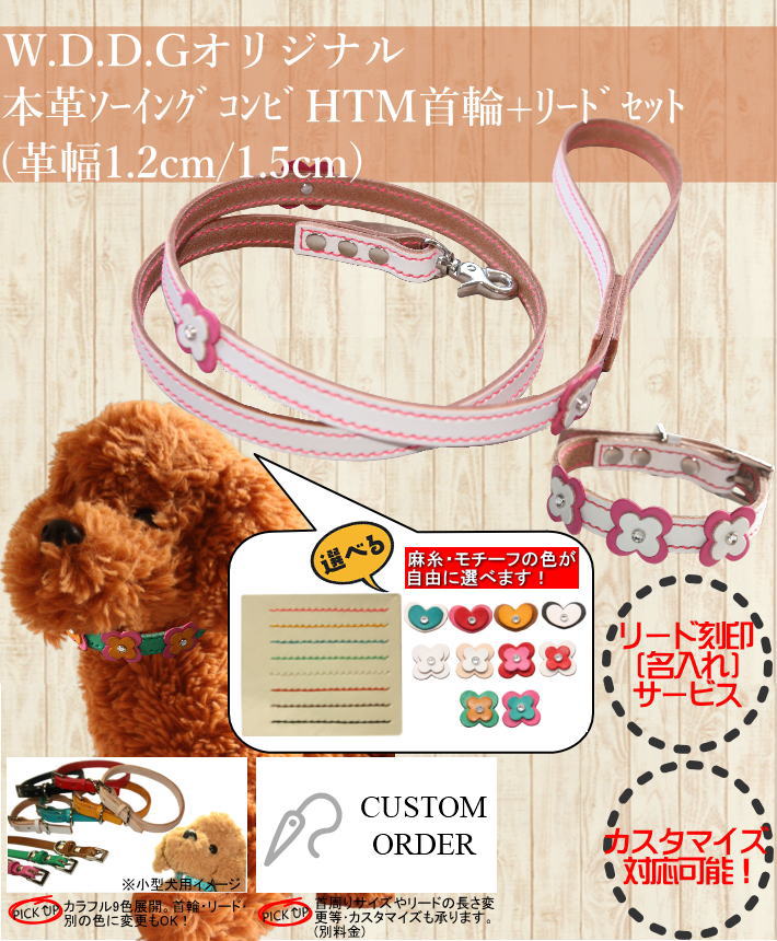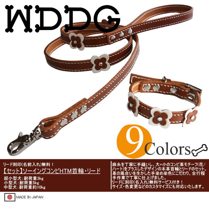 犬 革 首輪 リードセット 名前入り 本革 ソーイング コンビHTM 首輪 リード セット 超小型犬 小型犬 中型犬 犬首輪 迷子札 收藏