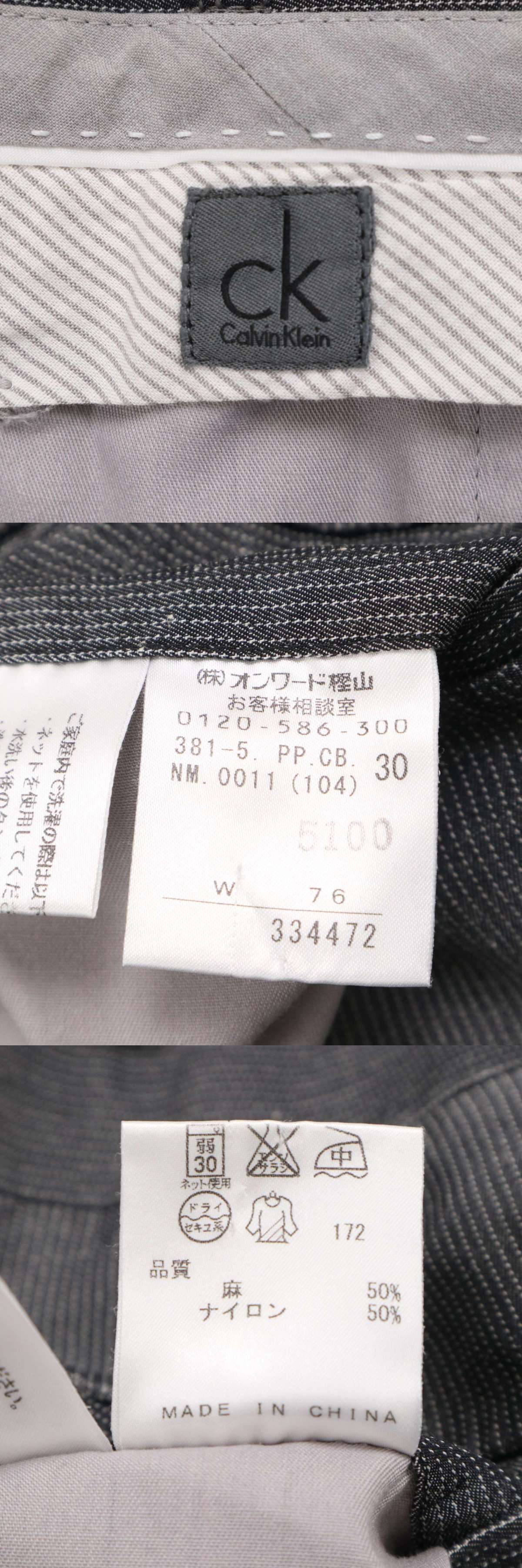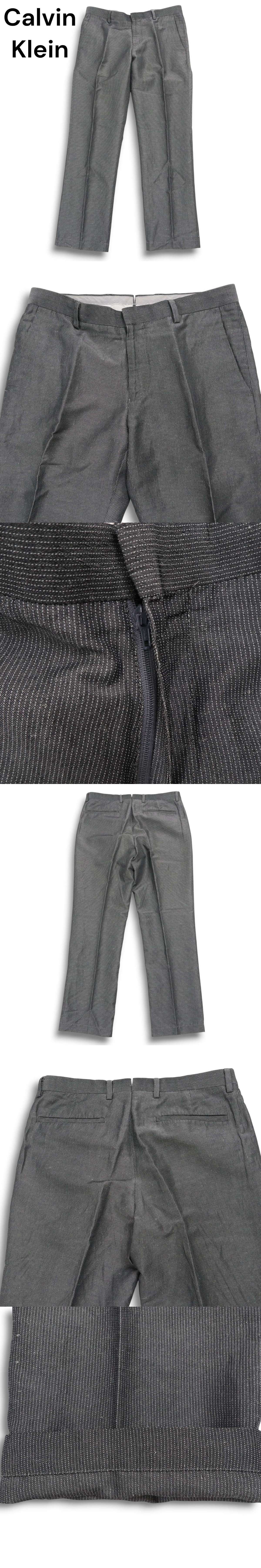 CK Calvin Klein カルバンクライン 春夏 麻 リネン★ ストライプ スラックス パンツ Sz.W76 メンズ グレー 收藏