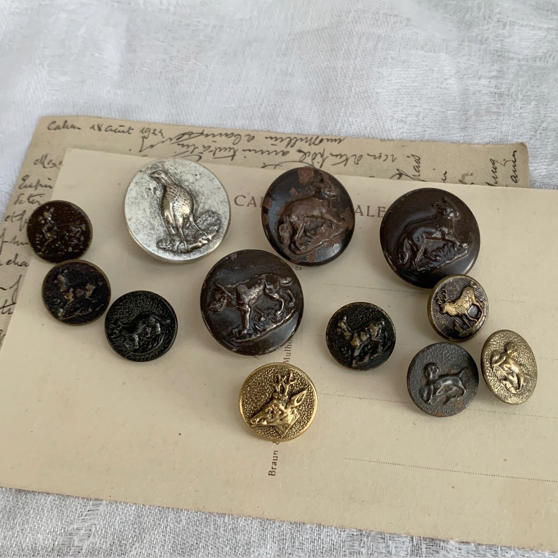 PayPayフリマからご覧のお客様 説明欄に追加画像を掲載している商品がございます PayPayフリマからではご覧いただけません の『商品詳細を見る』から追加画像をご確認ください 表示価格は、ボタン1個の価格です フランス パリ 19世紀後期 R.L. & Fre社 ハンティングジャケットのボタン 鹿がモチーフ 真鍮に茶のペイント 裏に若干錆が見られます サイズ:φ16mm 厚み5mm 他にも多数出品していますので是非ご覧ください ホームページもございますので、よろしければご覧ください -------------------------------------------------------------------------------------------------- ・古物と十分ご理解の上落札をお願いします ・撮影に使われているその他小物はお取引に含まれません ・新規の方は入札前に質問欄からお問い合わせ下さい ・落札後のキャンセル、返品(クレーム)はご遠慮ください ・割引販売、梱包方法の指定はご遠慮ください ・画面と実物の色味の違い、サイズの若干誤差などが生じる場合がございます ・状態を全て掲載、記載する事は難しく、気になる点は事前に必ずご質問下さい ※状態とは( 痕、傷、汚れ、シミ、ホツレ、錆、ひび割れ等) -------------------------------------------------------------------------------------------------- |