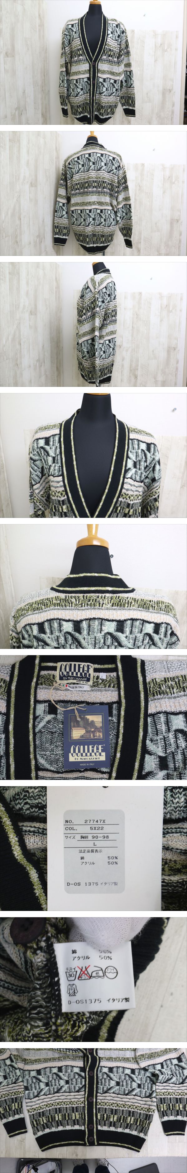 【ト萬】オールドヴィンテージ カレッジバイマルカッツァーニ 90s 3D ニットカーディガン (L) グリーン ※未使用品 SA000RNP03 收藏