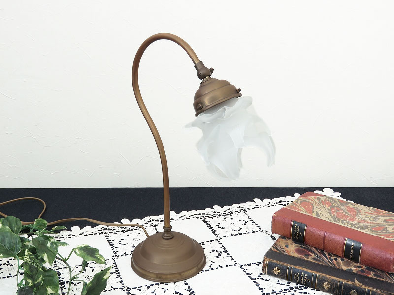《セール品》花のシェードが可愛らしいアンティーク調の真鍮製卓上ランプ/テーブルライト/店舗什器/インテリア雑貨/ディスプレイ/AL-2468-1 收藏
