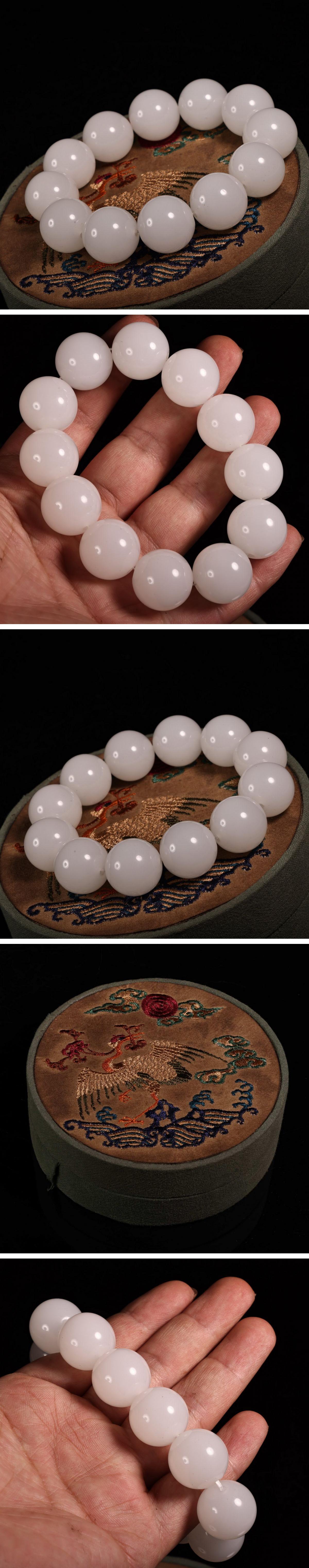 【清】関西某オークション購入 中国・清時代 和田玉子料 数珠・念珠 共箱 極細工 古置物 古擺件 中国古美術7L12-WN2 收藏