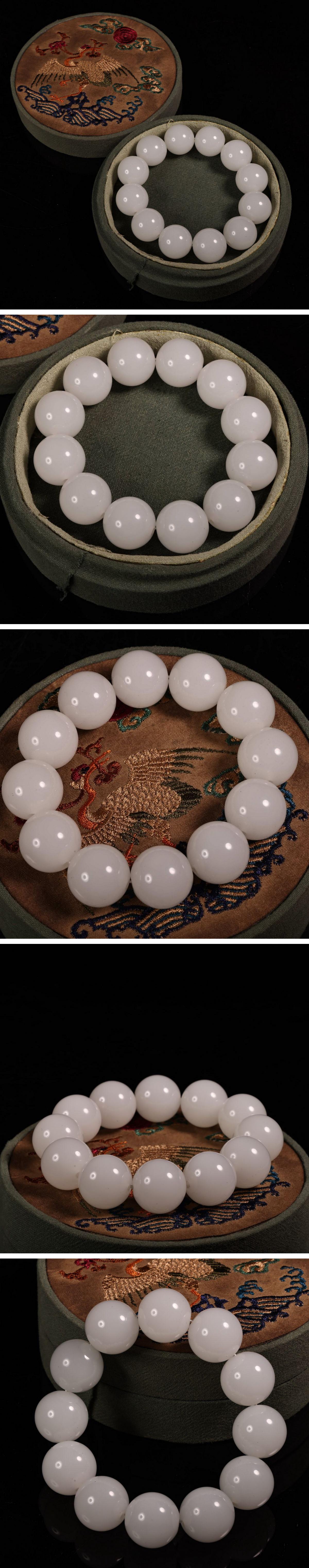 【清】関西某オークション購入 中国・清時代 和田玉子料 数珠・念珠 共箱 極細工 古置物 古擺件 中国古美術7L12-WN2