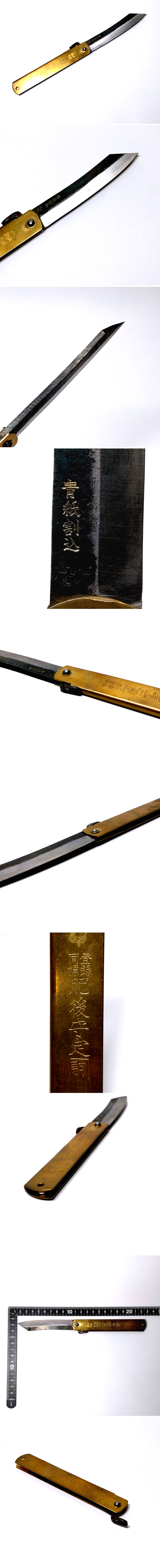 【侍】肥後守 ひごのかみ 青神割込 真鍮製 特大 ハンティングナイフ 21㎝ 20=883 收藏