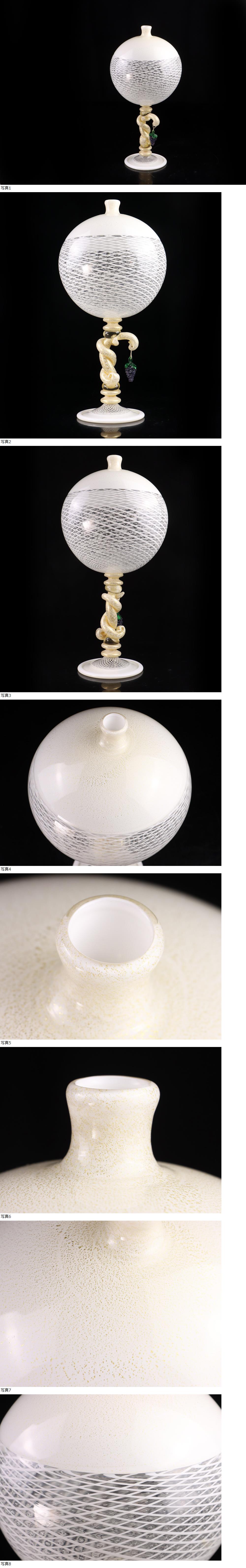 魁◆名家コレクション 本物保証 アンフォーラ ムラーノ ベネチアングラス スネーク足 一輪差聖杯 レースガラス 置物 高さ38㎝ 希少厳選作 收藏