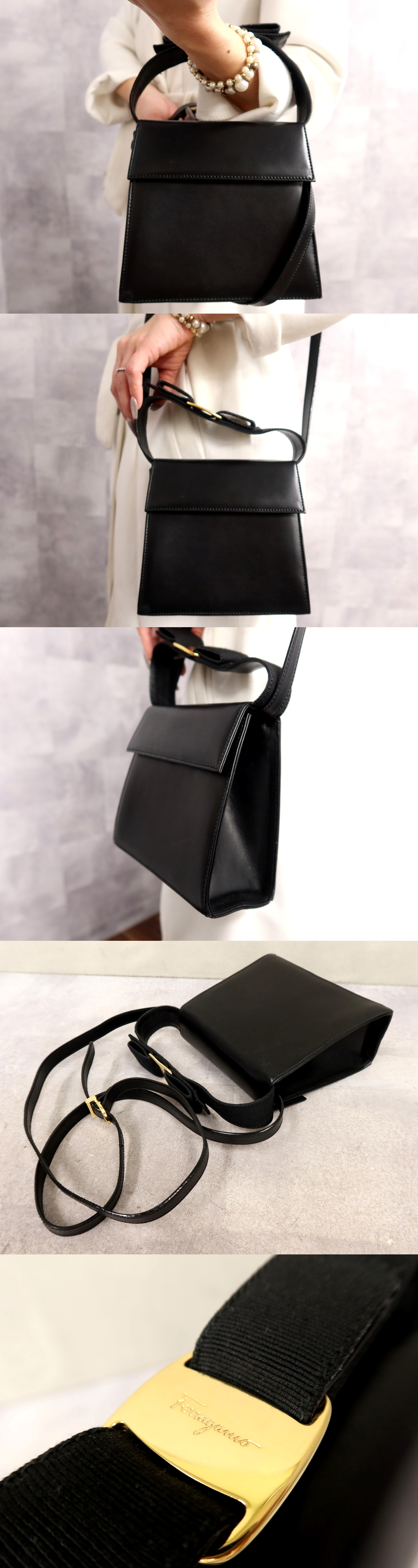 ●超美品●Salvatore Ferragamo フェラガモ●ヴァラリボン●カーフ レザー 本革●2way ハンド バッグ●黒●ゴールド金具●かばん●Js64734 收藏