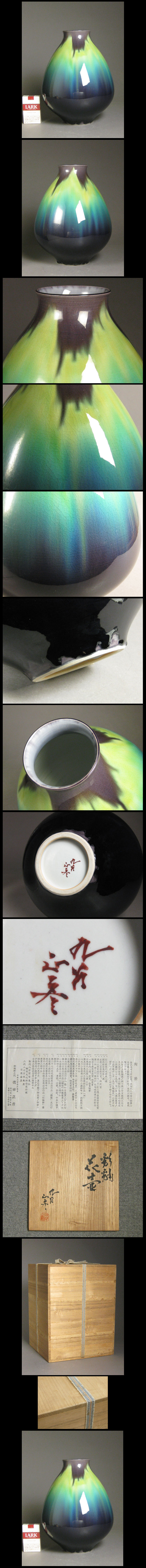 【心庵】九谷焼 徳田正彦(三代徳田八十吉)彩釉/花壺 花瓶 共箱 陶歴 KB038 收藏