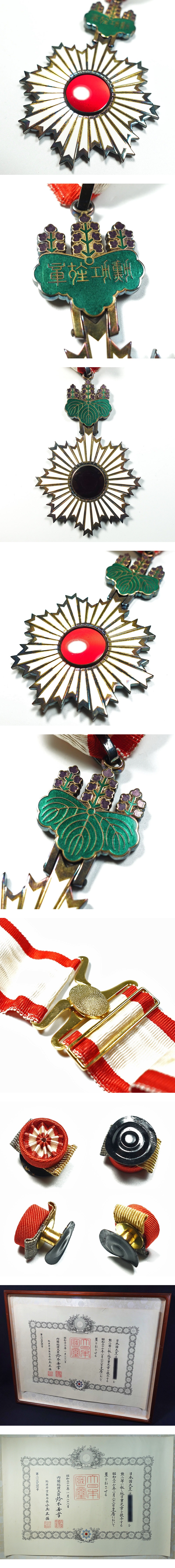 【勲章】勲二等旭日重光章 正章 副章 略綬 共箱入 賞状有 五七桐紋 七宝 純銀 昭和期 日本国勲章 收藏