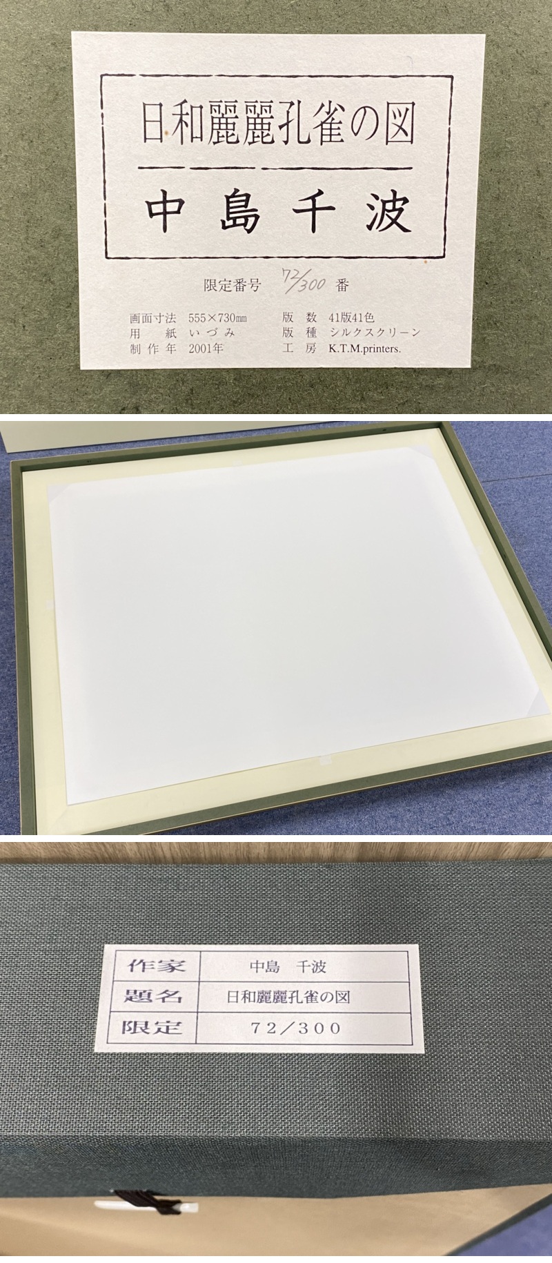 i2101 真作 中島千波 日和麗麗孔雀の図 シルクスクリーン 72/300 直筆サイン2001年 大作 41版41色摺り KTM 收藏