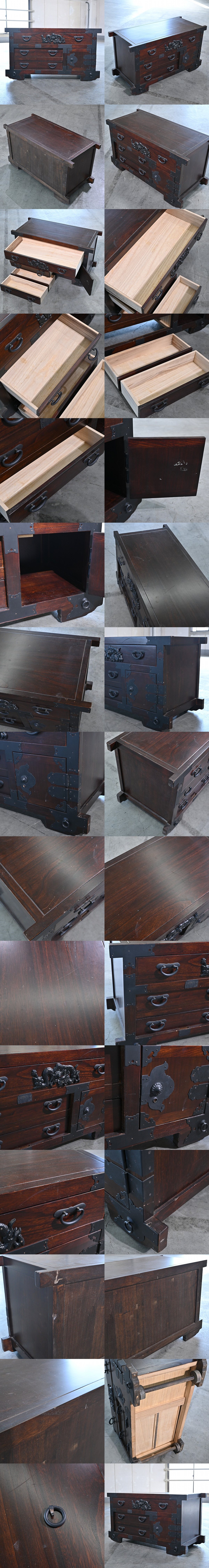和家具 車箪笥 B ケヤキ材 竜文金具 リビング ダイニング 書斎 引出し 収納 チェスト コンパクト アンティーク 欅 民芸調 江戸 和室 收藏