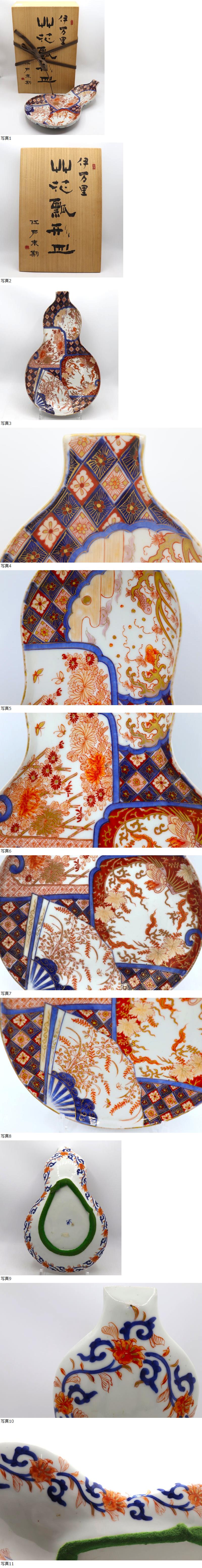 伊万里 艸花瓢形皿 江戸末期 オールド香蘭社 瓢箪 ひょうたん 色絵金彩花紋 陶器 共箱付 食器 收藏