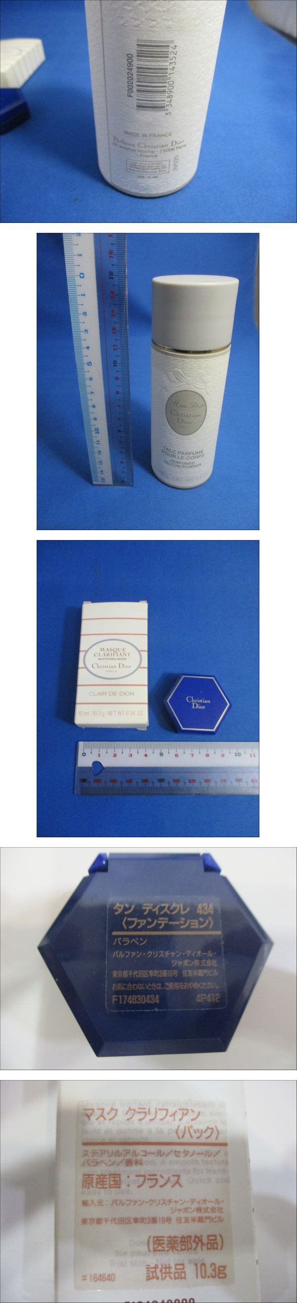 | 商品説明 | 中古/使用品につき キズ、スレ、ヨゴレがあります. ・ファンデーション タンディスクレ 434 ・ミスディオール ボディパウダー (TALC PARFUME POUR LE CORPS) ・マスク クラリフィアン (MASQUE CLARIFIANT): クレイパック の三点です。 残量は不明です。 写真に写っている物が全ての内容です。状態を写真にてご判断頂ける方のみご入札をお願いします。 |