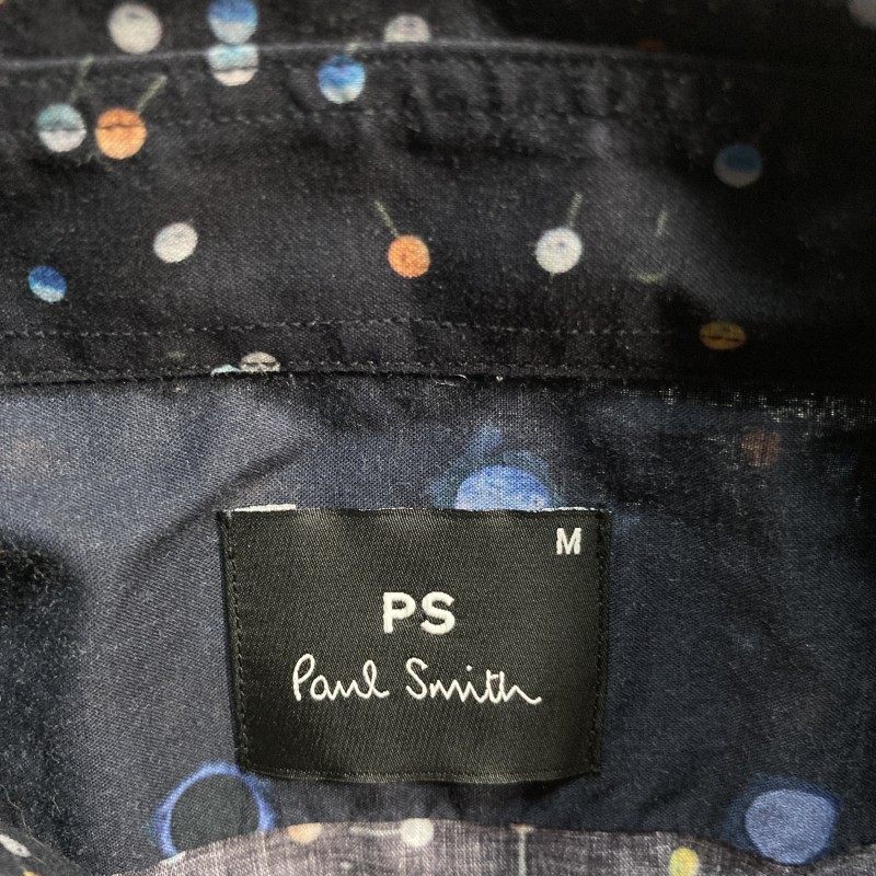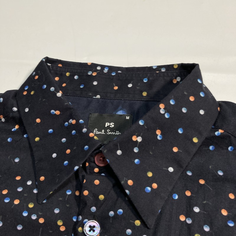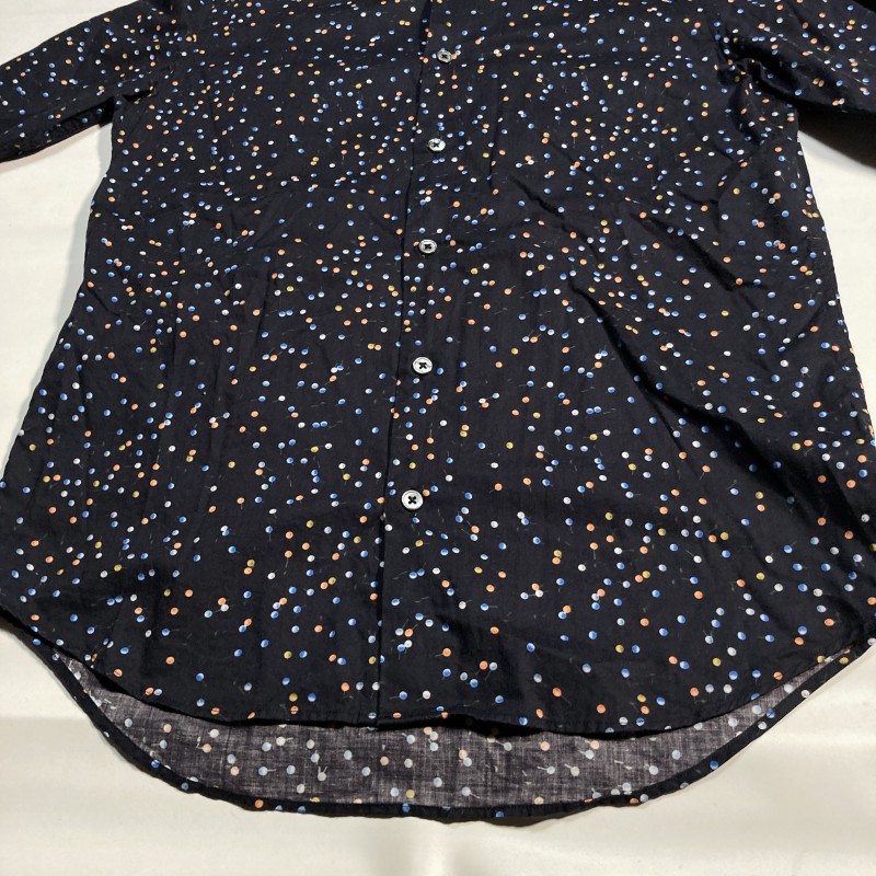 PAUL SMITH★PINS PRINT SHIRT★激レア★ポップ&ダーク優雅★まち針 ドット柄 長袖シャツ アシメ 袖裏アクセント切替 黒 M ポールスミス PS 收藏