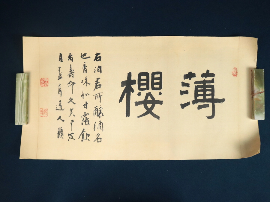12976◆【真作】前田黙鳳 書 「薄桜」 横物 絹本 前田忠作の次男 書家 マクリ 收藏