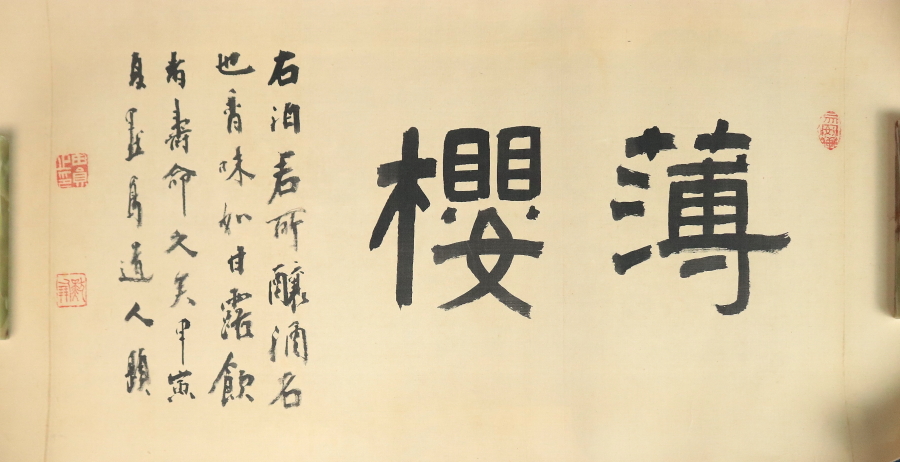 12976◆【真作】前田黙鳳 書 「薄桜」 横物 絹本 前田忠作の次男 書家 マクリ