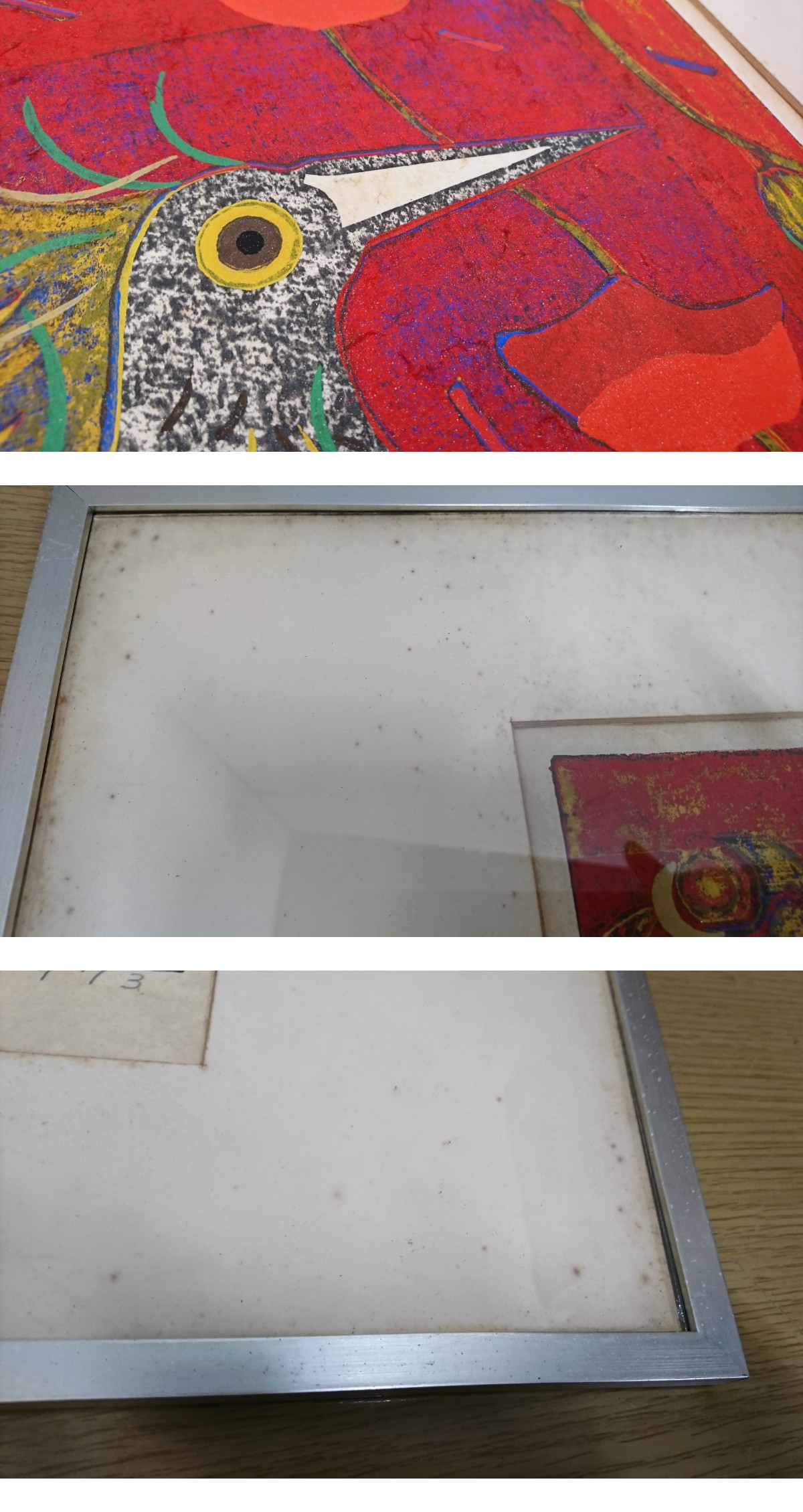 【真作】木版画 木村義治 作 「花と鳥」 51/100 花 鳥 1973年 直筆サイン 本物保証 を出品します。 この機会に良い方にご落札、コレクション頂けると幸いです。 ◆木村義治(1934年)◆ 日本板画院会員、国画会会員。笹島喜平に師事。 日本板画院展工芸館賞、国画会展野島賞など受賞。 【商品説明】 ◆額サイズ:ヨコ約56.3㎝×タテ約44㎝ ◆イメージサイズ:ヨコ約34.2㎝×タテ約37㎝ 額下にサイン、裏面に印あり。 ※写真にあるものが全てです。 写真の通り支障が出るような大きなダメージはございませんが、 白い部分は全体的に汚れが目立ちます。(画像参照) 額縁にも擦れや傷、裏面の汚れがございます。 長期自宅保管品の為、保管汚れ等取り切れない汚れはあるかと思います。 その他見落としている小傷や汚れ等あるかもしれません。 出来る限り写真を掲載しております。写真をご確認の上 ノークレームノーリターンをご了承の上入札下さい。 商品の状態を極度に気になさる方、神経質な方の入札はご遠慮ください また、稀にあまりにも入札が少ない場合や金額がお安い場合等、 終了前に出品取消を行う場合がございますので ご理解、ご了承の上でオークション参加、宜しくお願い致します。 当方、作家物に関しては、原則真作保証・真筆保証で出品致しております。 落札後の異議申し立てをされる場合は、商品到着後90日以内に 作家の公的または指定鑑定機関で真作でないと判断された場合、落札金額、送料等の返金を致します。 ※指定鑑定人とは、(株)美術年鑑社刊 美術年鑑 (株)経済界刊 美術市場 に掲載されている 鑑定機関及び鑑定人を言います それ以外の第三者による個人的な意見等の申請はお受けできません。 尚、配送時の破損その他の事項については説明文下記の注意事項をご確認ください。