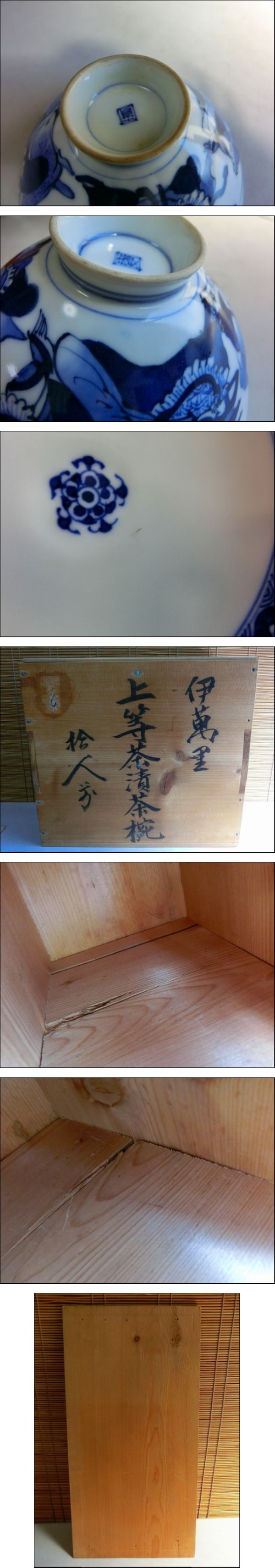 めD8S 蓋付茶碗 伊万里 染付 10客 『伊萬里 上等茶漬茶碗 拾人揃』 共箱 骨董 美術品 アンティーク 時代物 年代物 七福神 收藏