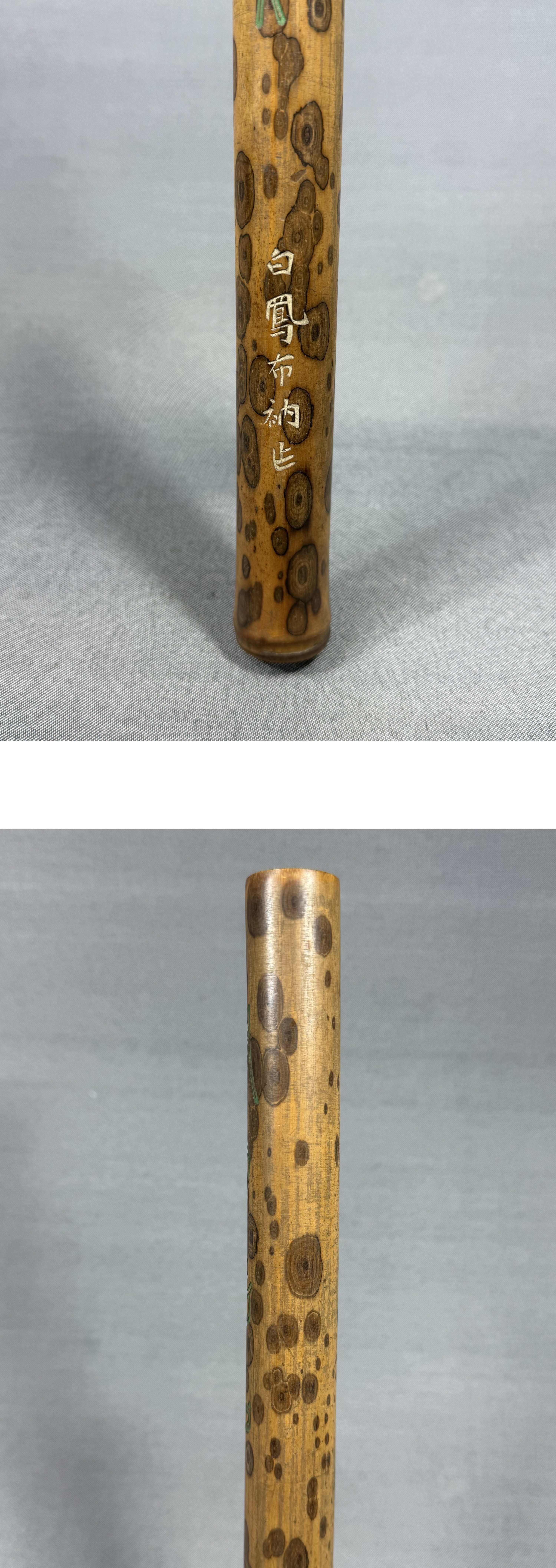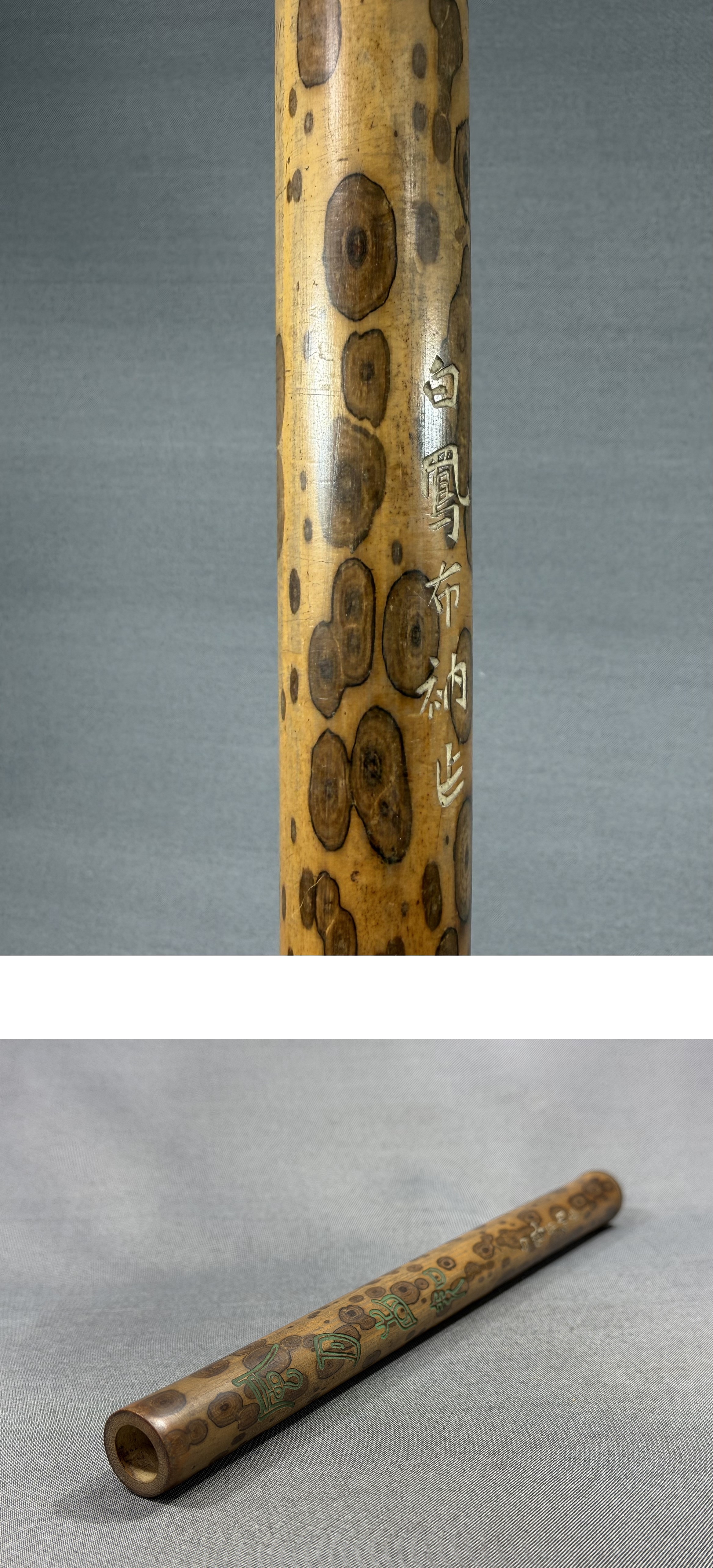 【風車】白鳳布衲 作 斑竹 彫刻 風月相知 線香筒 湘妃竹 時代物▲在銘▲仏具 香道具 線香入れ 茶道具 竹筒 收藏