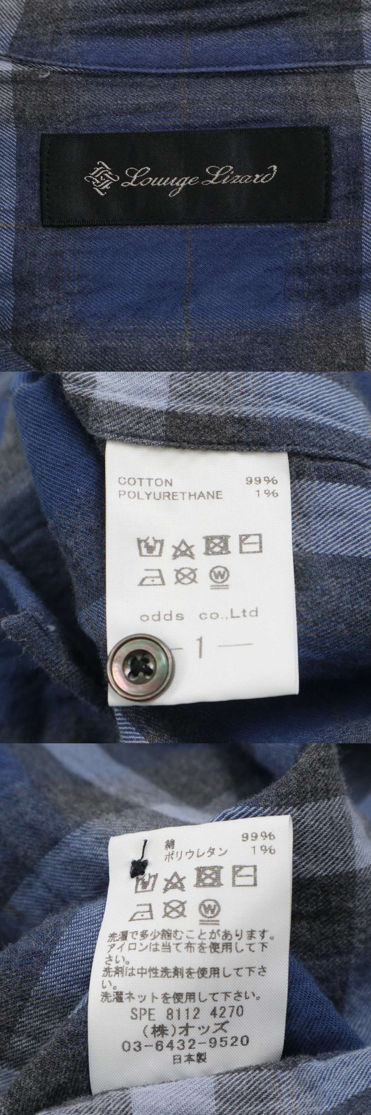 LOUNGE LIZARD ラウンジリザード 通年★ 長袖 チェック柄 ワーク シャツ 日本製 Sz.1 メンズ 收藏