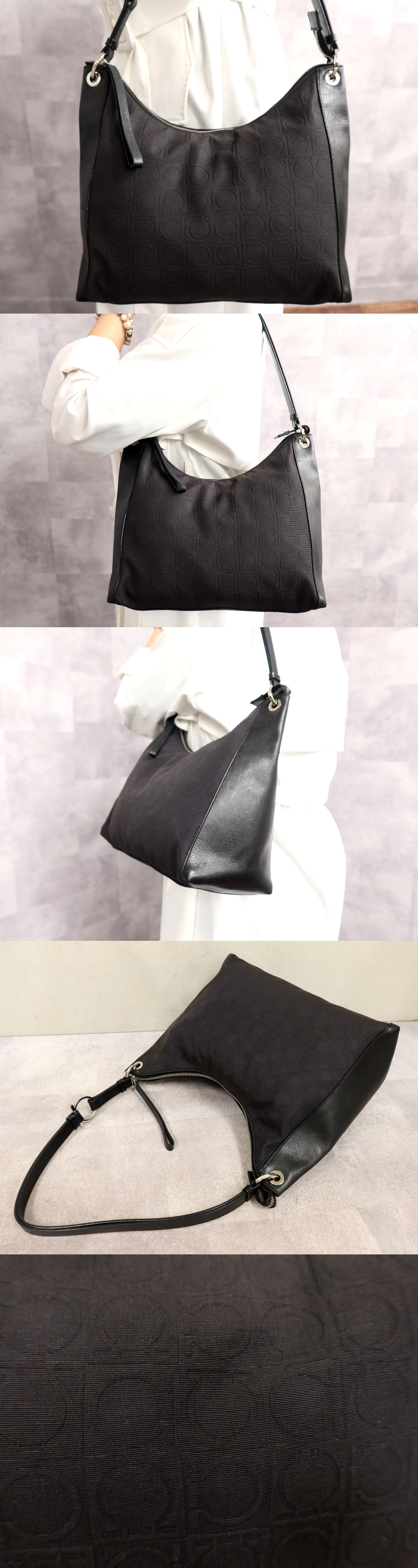 ●超美品●Salvatore Ferragamo フェラガモ●ガンチーニ●ナイロン カーフ レザー 本革●ワンショルダー バッグ●黒●SV金具●B5●Js66798 收藏